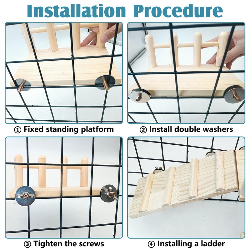- Bird perch platform: The bird perch platform is made of natural wood, assembled with nuts and screws, and can be firmly installed in the parrot cage. Don't worry about your bird falling off. Easy to install, durable, suitable for daily use by birds