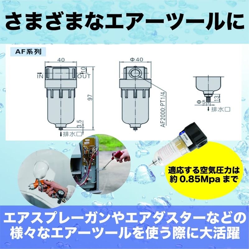 - MULTIPLE AIR TOOLS: Use it when using a variety of air tools such as air spray guns and air dusters. Suitable air pressure is up to approximately 0.85 MPa