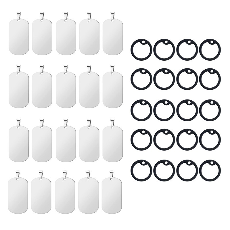 - Each 20-piece set allows you to use it without worrying about the remaining charge of the bag: This set includes 20 dog tags and 20 silencers for plenty of DIY fun. Used by handmade workshops, accessory writers and DIY hobbyists