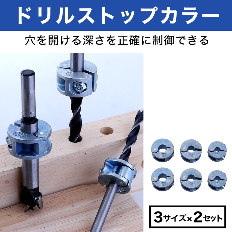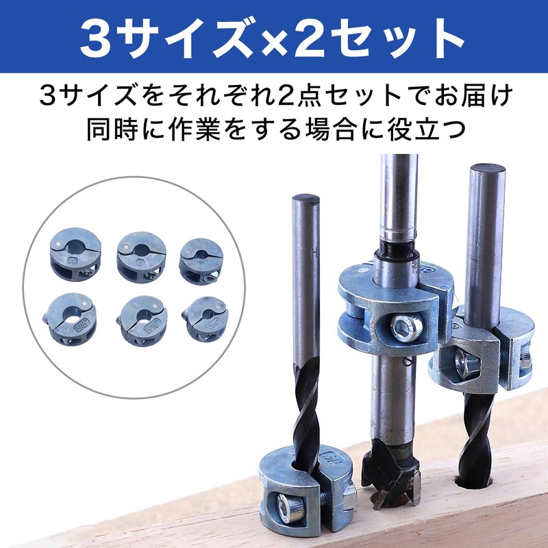 HAMILO Drill Stop Collar Depth Adjustment Ring Drill Bit Stopper, 3 Sizes x 2 Sets