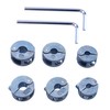 • Set Contents: 3 sizes x 2 set; Size: Height approx. 0.5 inches (12 mm), Diameter A approx. 0.7 inches (19 mm), B approx. 0.9 inches (22 mm), C approx. 0.9 inches (24 mm); Material: Zinc alloy; Color: Silver; Accessories: Allen wrench; *Depending on your monitor settings, there may be slight differences in the viewing conditions