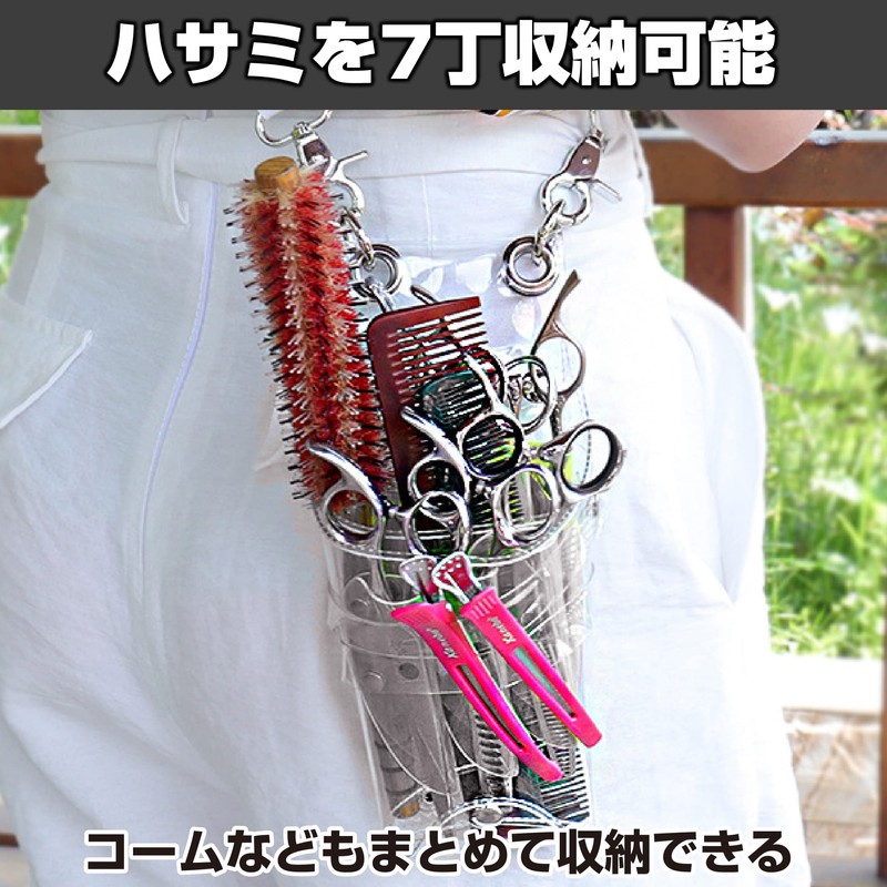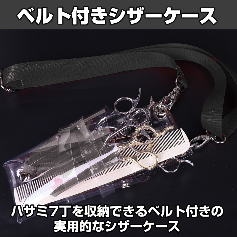 - PRACTICAL SCISSOR CASE WITH BELT: This is a practical scissor case with a belt that can hold 7 scissors. The exterior of the case is clear and the divider is gray for a stylish design