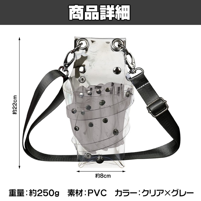 Size: Approx. 8.7 x 3.1 inches (22 x 8 cm); Weight: Approx. 8.8 oz (250 g); Material: PVC; Color: Clear x Gray; *Depending on your monitor settings, there may be slight differences in the appearance of the product.