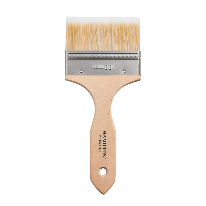 - Thin brush with fine synthetic filaments for finishing, not suitable for application