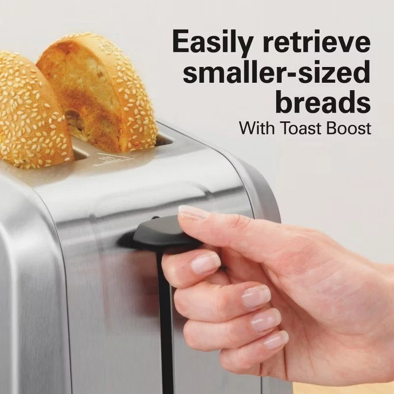 EASILY RETRIEVE SMALLER-SIZED BREADS: The Toast Boost feature on the bread toaster lifts smaller breads like English muffins so they're easier to retrieve after toasting.