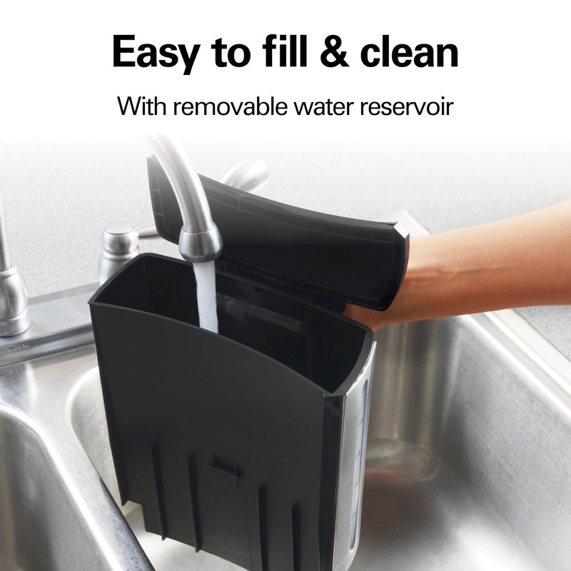 • EASY TO FILL WITH REMOVABLE WATER RESERVOIR: The water reservoir removes for easy filling and cleaning. With a 12 cup capacity, you can brew enough coffee for everyone at once. Enclosed brewing system with internal heater keeps coffee hot and fresh for up to 4 hours