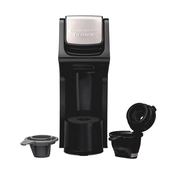 Hamilton Beach 49918 FlexBrew Single-Serve Coffee Maker Compatible with Pod Packs and Grounds, 14 oz, Black, Stainless - Fast Brew