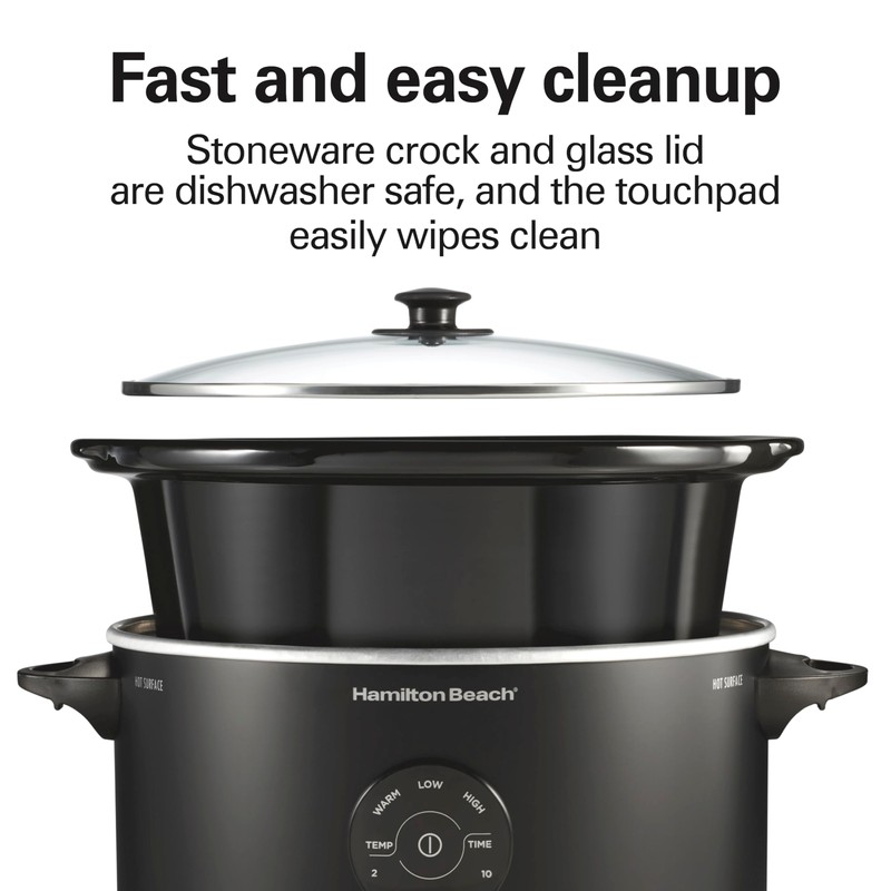 - FAST AND EASY CLEANUP: The removable stoneware crock and glass lid are dishwasher safe, and the touchpad easily wipes clean.