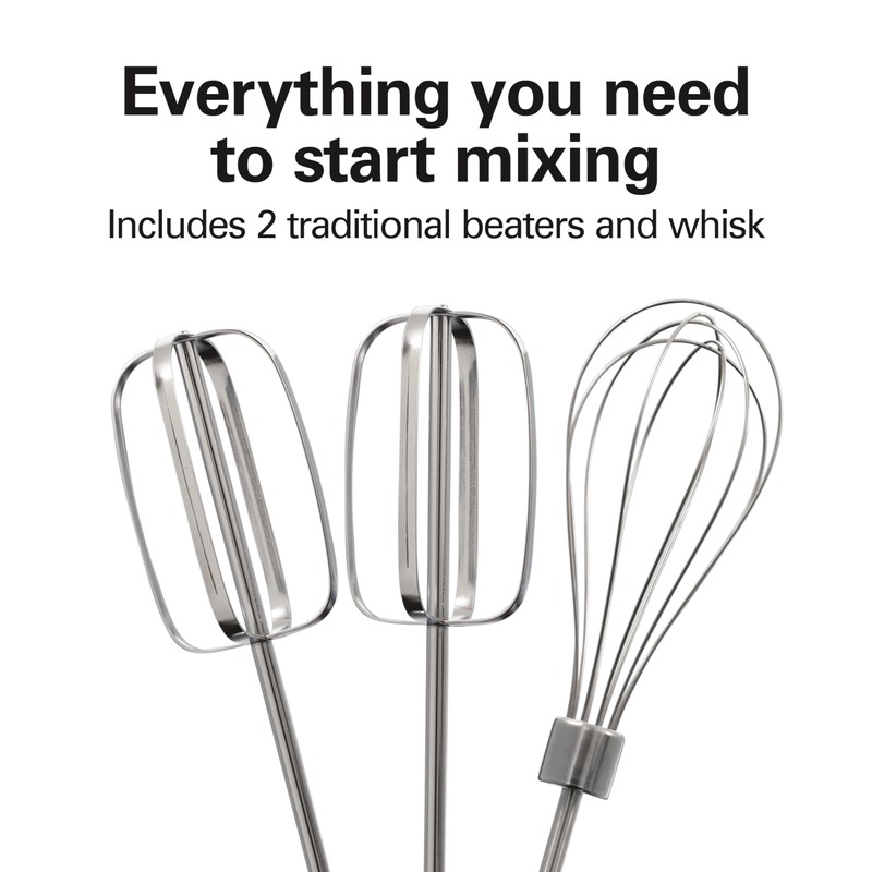 Convenient Features: Includes 2 dishwasher-safe beaters and a whisk; eject attachments with a press of the speed dial.