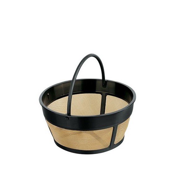 • FITS MOST COFFEE MAKERS — This basket-style drip coffee filter fits most 8-12 cup coffee makers with basket-style filters. The gold-tone filter's handle makes it easy to pull out of the coffee maker for refilling and cleaning.