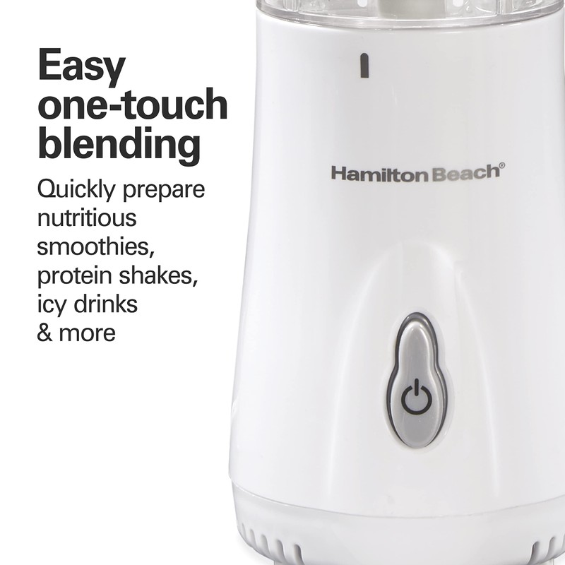 Hamilton Beach Portable Blender for Shakes and Smoothies with 14 Oz BPA Free Travel Cup and Lid, Durable Stainless Steel Blades for Powerful Blending Performance, 2 Jars - White (51102V)