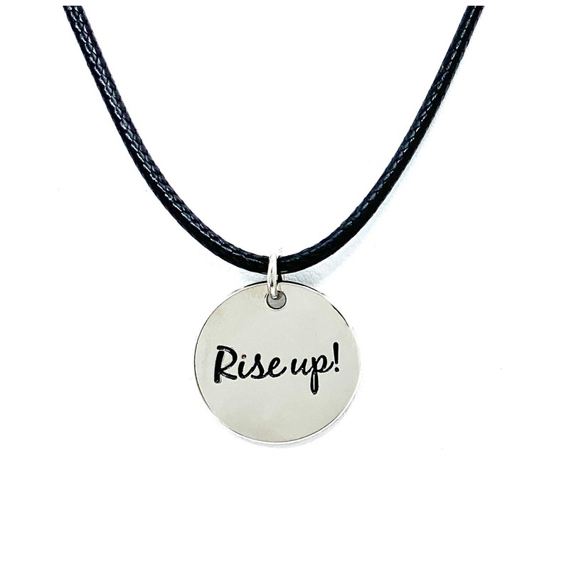- ¡Este lujoso Rise Up! El collar está grabado con esmalte negro.