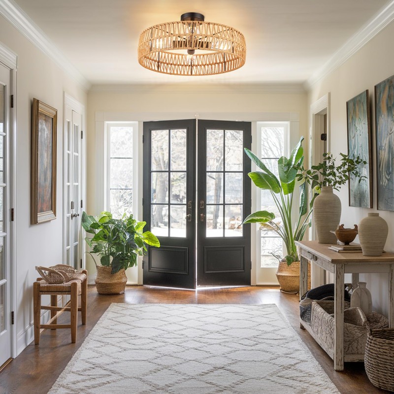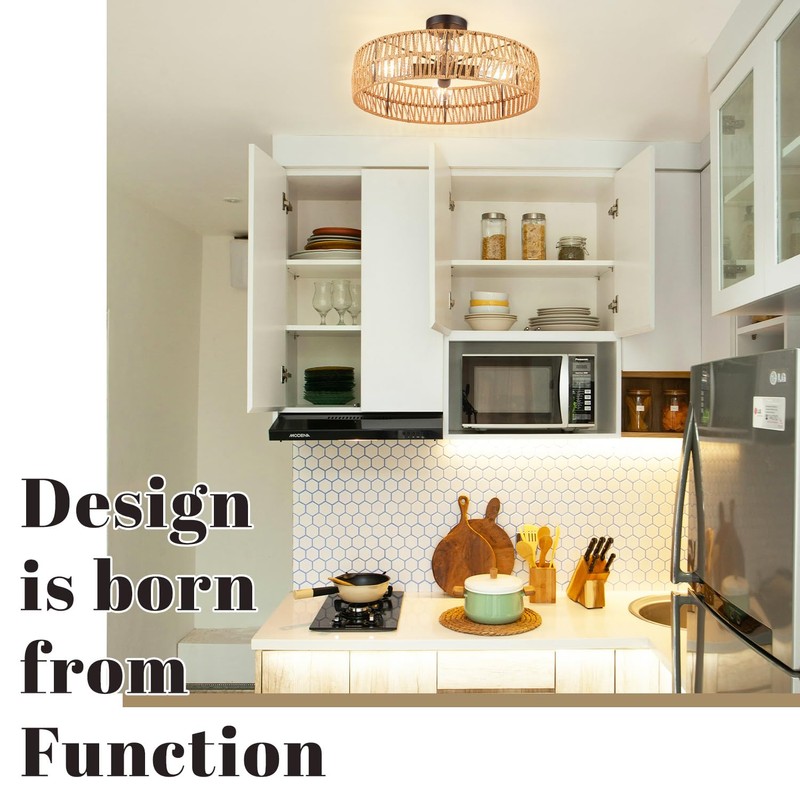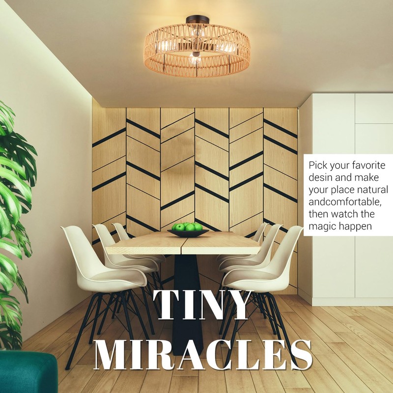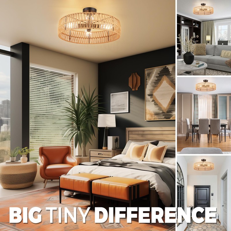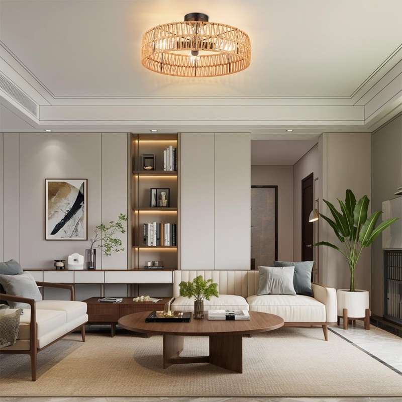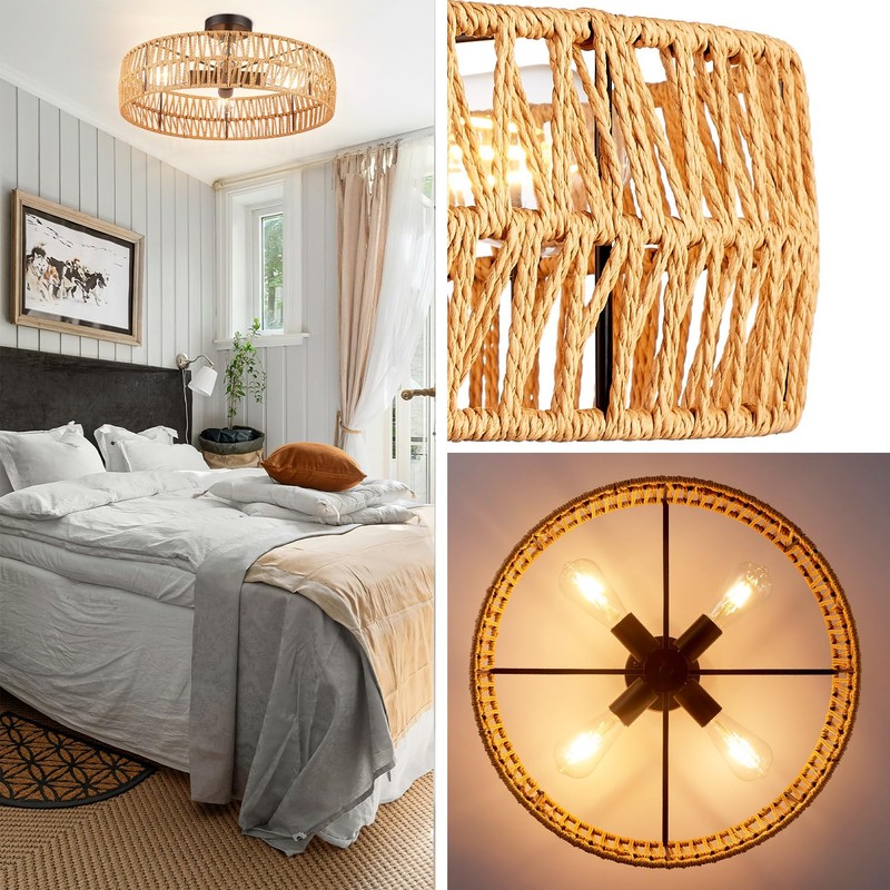 - 🦁 Versatile Large Round Semi Flush Mount Design: The semi flush mount design makes it an ideal rattan flush mount ceiling light for rooms with lower ceilings. The boho kitchen lighting fixtures for ceilings combines elegance and practicality, perfect for living room light fixtures or farmhouse bedroom lights for the ceiling.