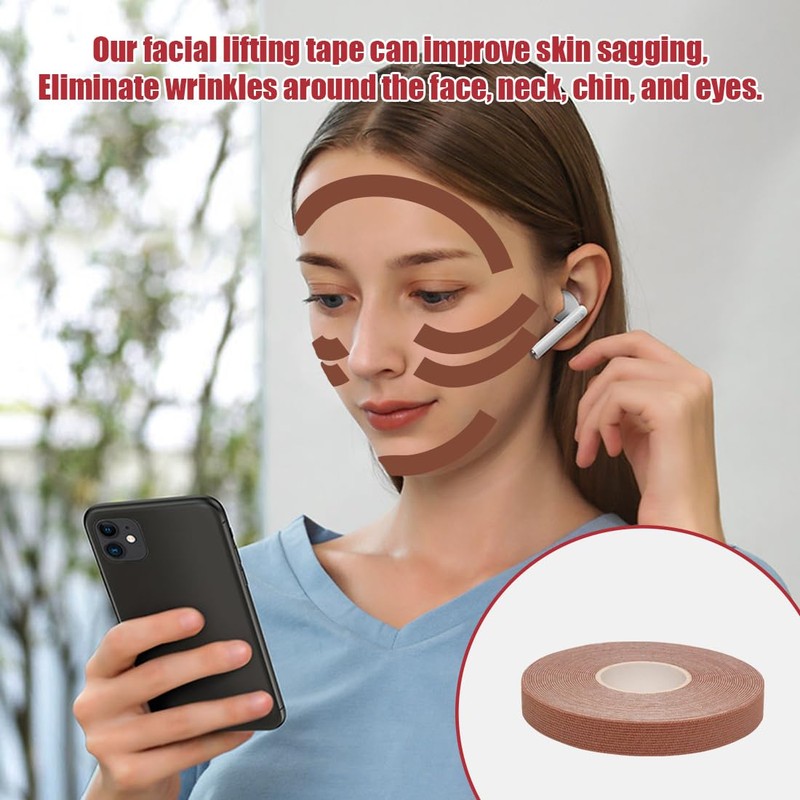 - Gesichtstapes: Facelifting-Tapes eignen sich perfekt für besondere Anlässe, Hochzeiten, Styling, Konferenzen, Fotografie, Reisen und mehr. Dieses kosmetische Gesichtstape eignet sich nicht nur zur Reduzierung von Gesichtsfalten, sondern auch zur Verbesserung von Halsfalten. Es kann auch als endomuskuläres Tape verwendet werden, um die Muskeln zu beruhigen