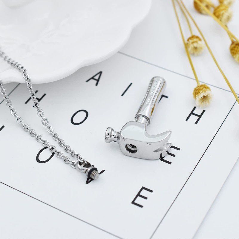- 🔨【Mechanic Urn Necklace Size】Hammer Urns Pendant Size: H1.69" * W0.87"; Urn pendant for ashes holder. creamation jewelry. Meticulously designed and quality made.