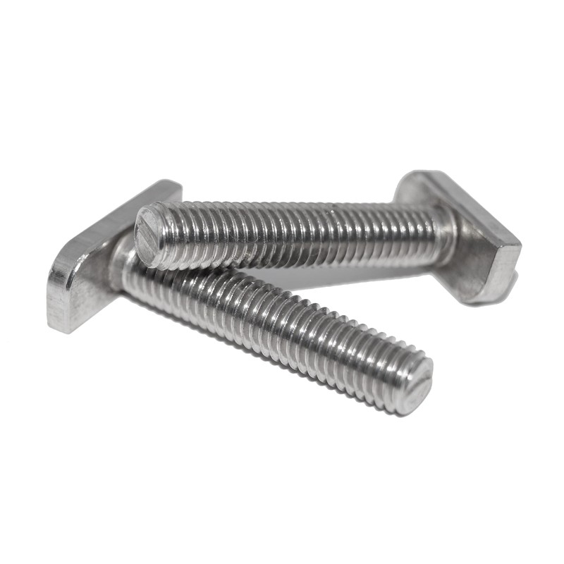 The hammer head screws have a metric standard thread. Thanks to variable displacement on a profile rail, positioning of the hammer head screw is possible. In most cases, they are used with profile rails. The hook head screws are used in many areas, e.g. in solar energy technology, photovoltaic systems, metal construction, railway construction, apparatus and mechanical engineering, DIY, garden, hobbies, sports boats, fishing etc.
