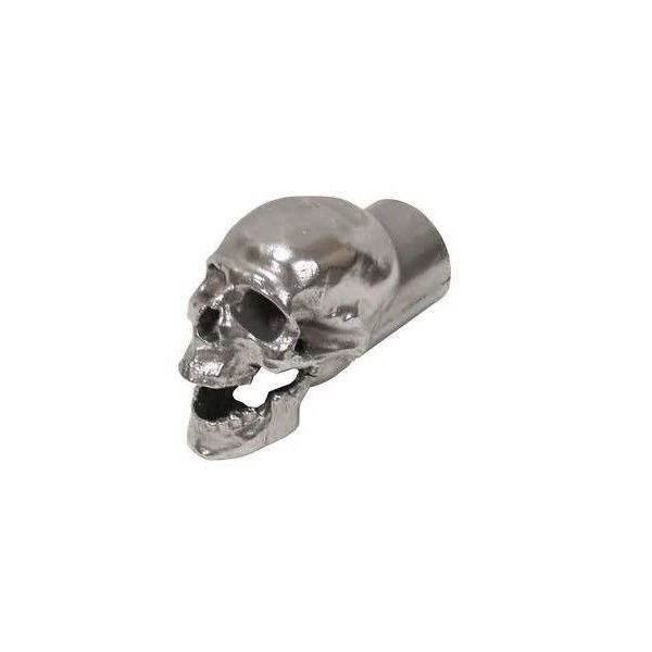 Hammered Aluminum Finish. Our original Skull Exhaust Tip is made out of 356 cast aluminum. This highly detailed skull will give your ride a look that will blow your mind! Our exhaust belching skull will fit without adapters over a stock 4", 3.5", 3", 2.5", 2.25" or 2" automotive exhaust pipe and will not restrict air flow. This is not a cheap plastic toy. This is the real deal! We guarantee you won't be disappointed.
