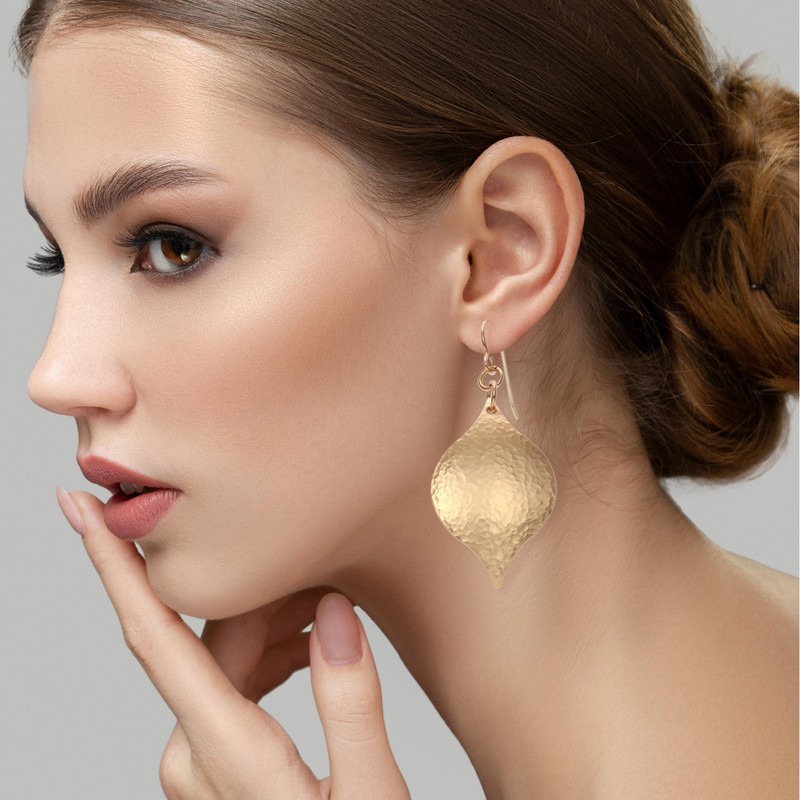 Finish off your favorite boho or nighttime looks with the help of these Hammered Bronze Marrakesh Drop Earrings. The earrings boast wide, rounded bodies that come to a sleek, angular point on the tops and the bottoms to offer the pair its classic Marrakesh appearance. The hammered finished along the entire design offers a bit of detail and makes the shiny finish really dazzle. Each pair of handcrafted earrings is fashioned out of premium bronze metal that is sure to outlast plenty of wears without succumbing to any sort of tarnishing.