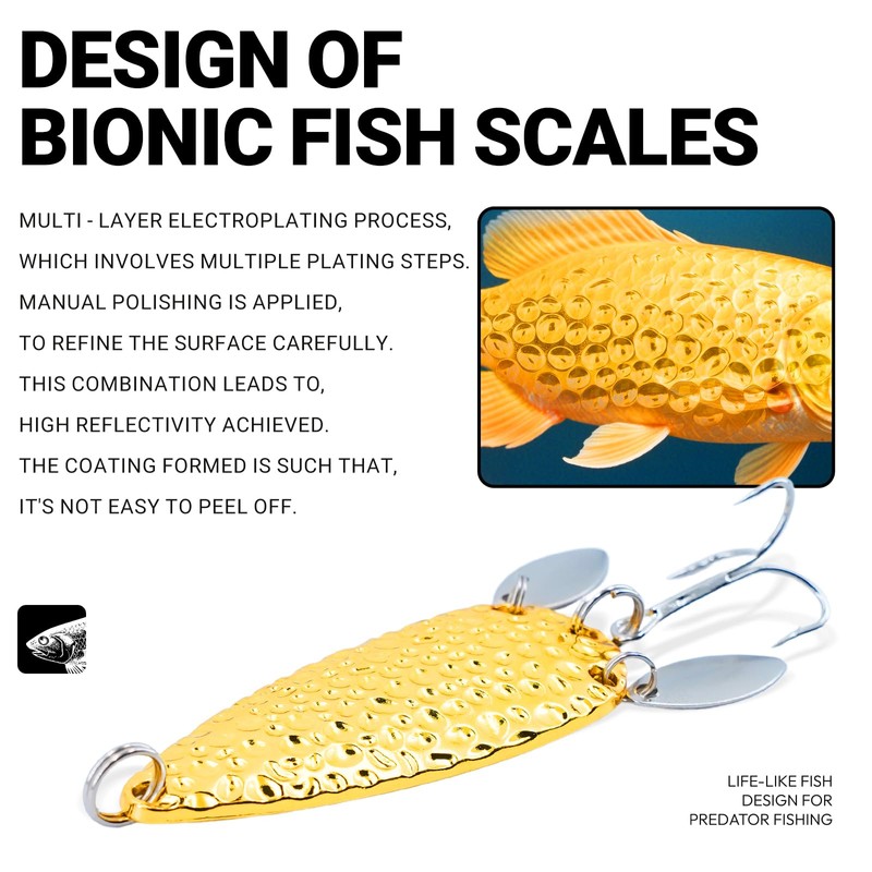- ATTRACTIVE FINISH: Metallic gold and silver finishes provide high visibility and flash that attracts fish in different water conditions