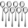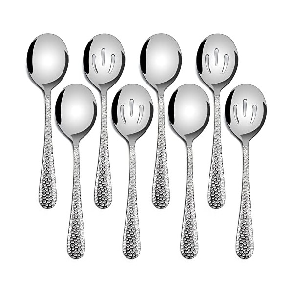 Hammered Serving Spoons, E-far 8-Piece Metal Serving Utensils Set - Solid Spoons x 4, Slotted Spoons x 4, Stainless Steel Hostess Serving Tablespoons Set for Catering Buffet Party Kitchen Restaurant