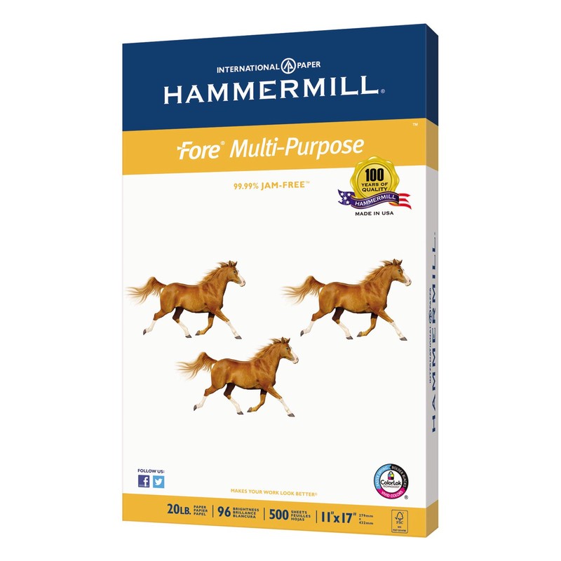 Hammermill 103192 Fore MP Multipurpose Paper, 96 Brightness, 20lb, 11 x 17, White, 500/Ream