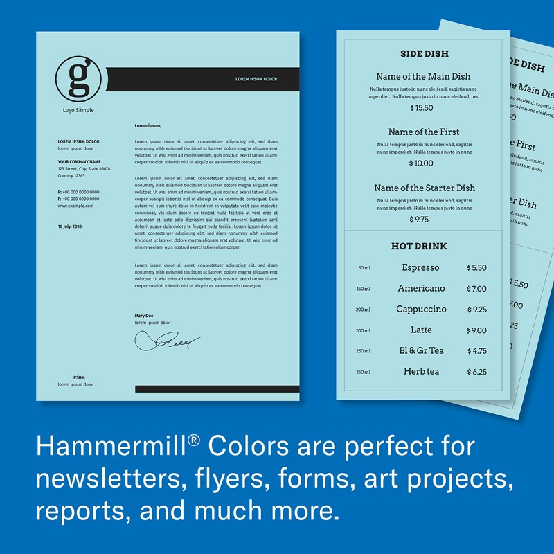 • SMOOTH SURFACE – Hammermill colored paper features a smooth, even surface with a high opacity minimal show-through. It’s the ideal colored copy paper for newsletters, flyers, forms, school/art projects, reports, color coding & more.