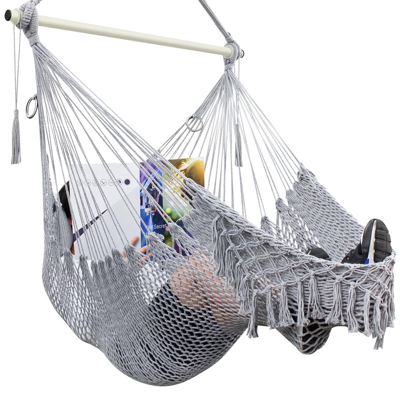- 【Stable and Resistant】 Enhanced with 78 strands of high-strength suspension ropes, this hammock chair provides increased weight-bearing capacity for added safety and durability. Its detachable metal spreader bar ensures excellent stability during use.