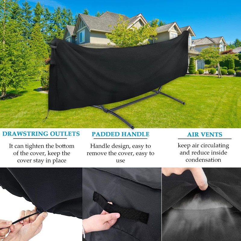 - QUALITY CONTROL AND ENVIRONMENTALLY FRIENDLY: All covers must be passed rigorous tests before delivery. Our hammock with stand cover contains no PVC with high pollutant content. You can use it with confidence!