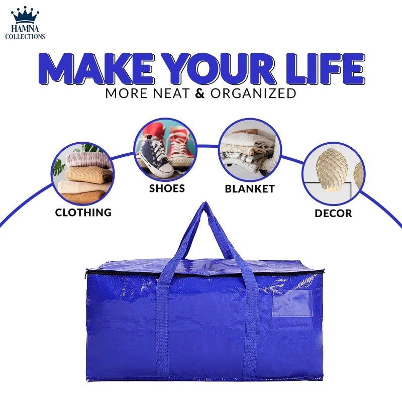 - Reinforced Handles & Strong Zippers Moving bags heavy duty are designed for easy lifting, the fully wrap-around handles with reinforced stitching ensure durability, while the heavy-duty zipper glides smoothly and holds strong even with heavy loads. Perfect wardrobe moving boxes, storage bins storage totes cubes containers for closet organizers.