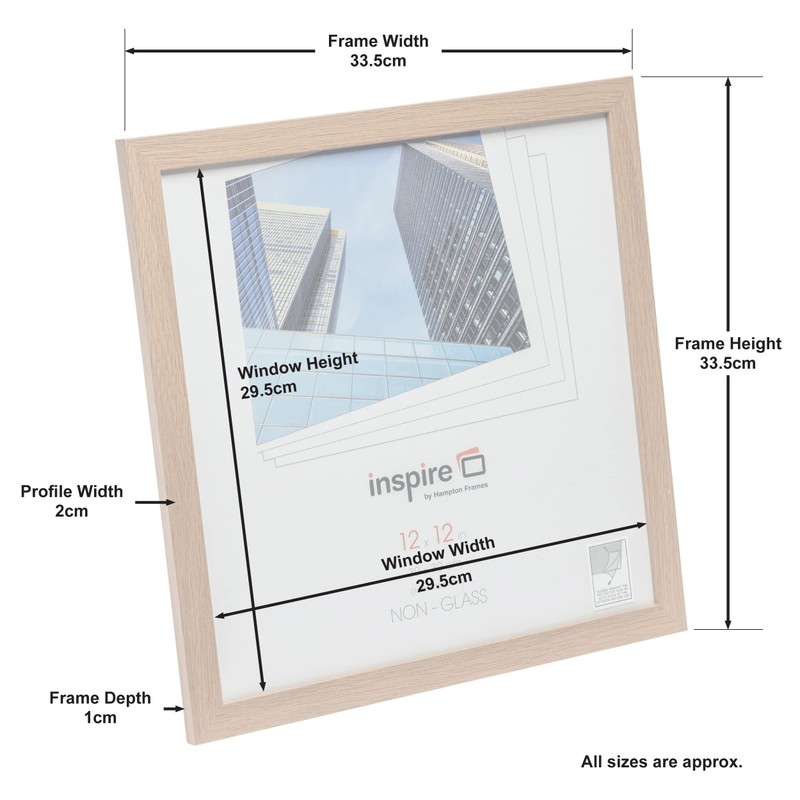 - 12x12 (30x30cm) Square Frame Made From Oak Effect Paperwrapped Wood Effect MDF. Supplied Shrinkwrapped and Boxed