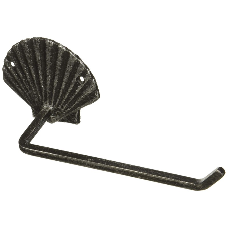 Hampton Nautical Antique Silver Cast Iron Shell Toilet Paper Holder 10" Bathroom Beach Home Decorating