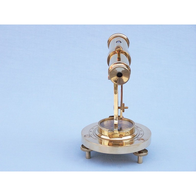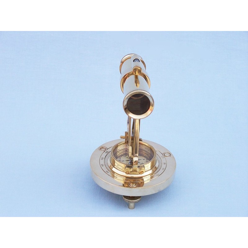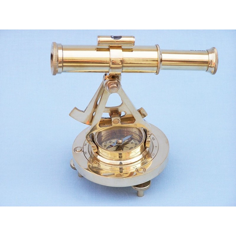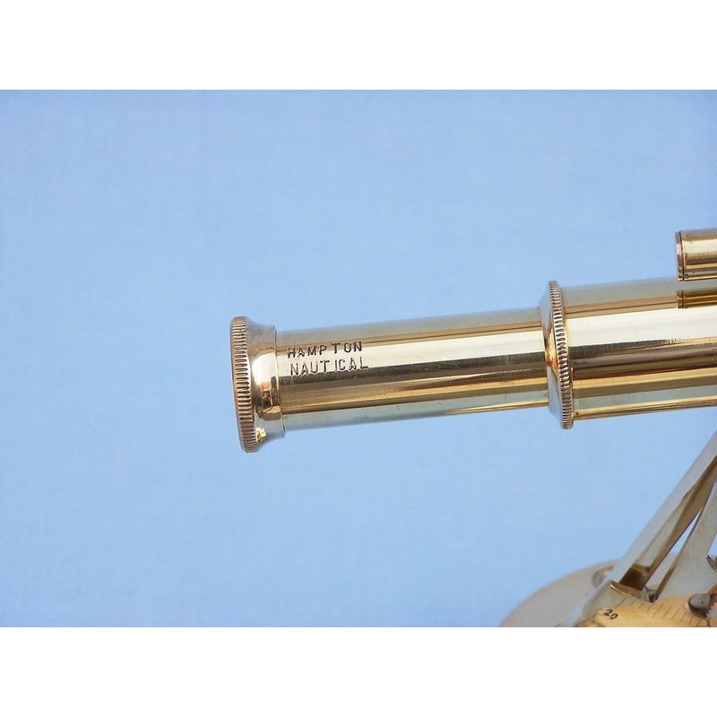 The Hampton Nautical Brass Alidade Compass with Telescope and Bubble Level is a beautiful desktop nautical gem or can rest perfectly on a mantel or bookshelf. This solid brass alidade has a 6-inch arch with 3 3/4-inch magnetic compass. Compass needle is adjustable. On the arch 15-inch fully extended telescope is mounted with bubble level. Alidade is mounted on brass metal base which has 3 adjustable screws. Nice quality reproduction for surveyors to align and measure vertical and horizontal angles. This solid brass nautical gem features a real working 8-powered telescope.