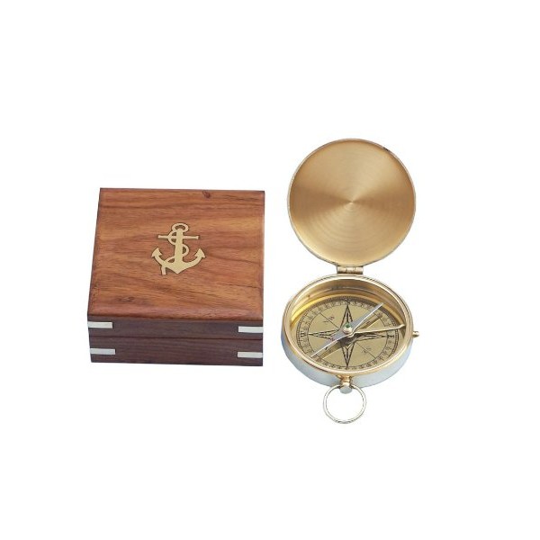 The Hampton Nautical Pocket Compass is truly a great gift to any nautical enthusiast in your life. This timeless navigational piece is solid brass and can be stored in one's pocket or in the solid rosewood box. Press the push button to reveal the compass. The compass needle is accurate, quick and responsive. The cap can be closed at any time. This solid brass compass comes with a rosewood box that has the Hampton Nautical anchor with rope logo embedded into the top. The box is a smooth and polished finish wood with a green felt on the inside to protect the compass.