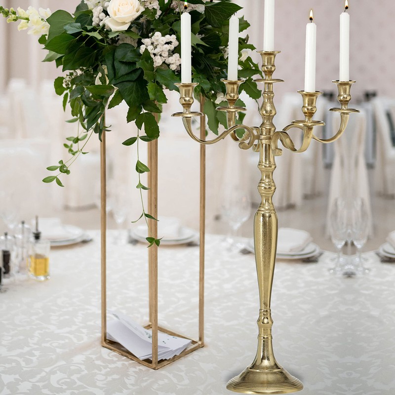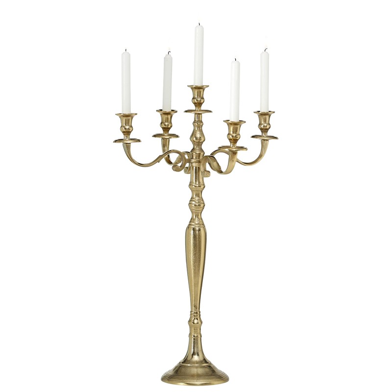 - Add sophisticated style to your party with our stunning gold 5 Candle Candelabra. With 4 arms, extend the wonderful glow of a lighted candles to welcome your guests with party panache.