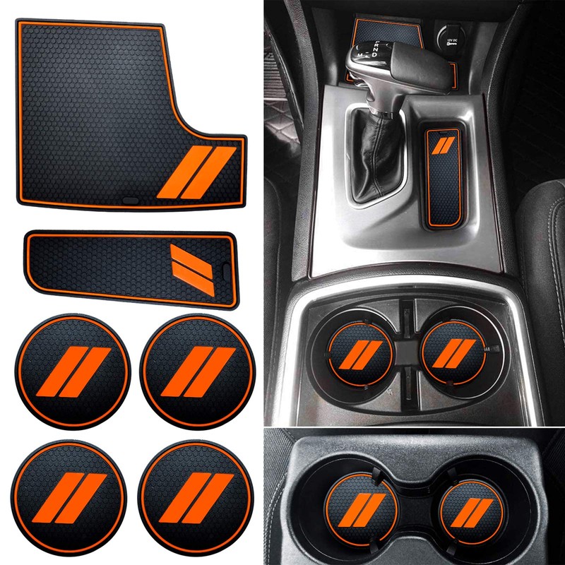 HAMSAM for Dodge Charger Accessories 2015-2021 Anti Dust Cup Holder Inserts, Door Pocket Liners and Center Console Liner Mats Premium Custom Interior(6pcs Set,Orange Trim)