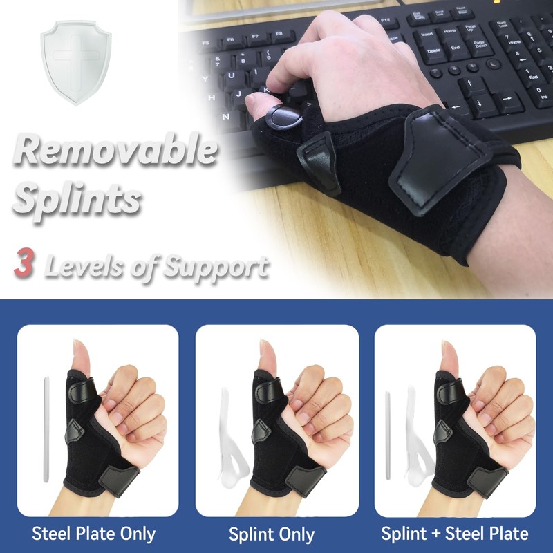 - Get Personalized Relief with Our Hamshine Thumb Brace - Crafted for a Perfect Fit. Our thumb brace is designed with you in mind, offering three levels of customizable support to suit your unique needs. Select from the removable steel plate, ergonomic splint, or combine both for the ultimate in stability and comfort. It's perfect for those dealing with MCP, CMC, Tenosynovitis, De Quervain’s Tendonitis, or Arthritis