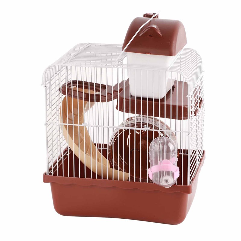 Hamster Cage, 2-Tier Ventilated Hamster Interesting Hamster for Small Animals (Brown)