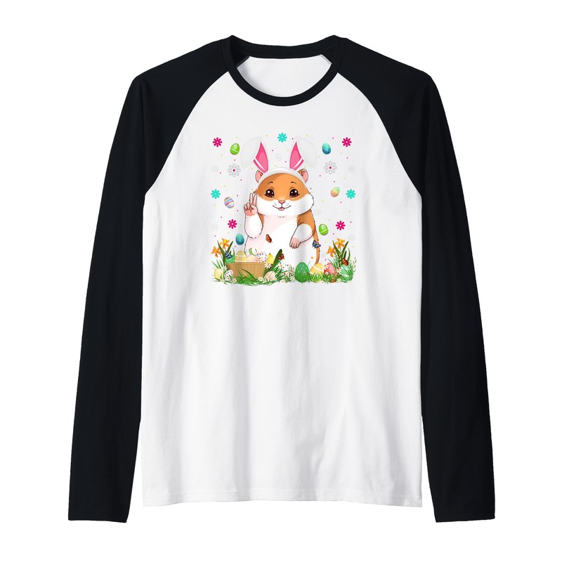 Hamster Easter Egg Hunt Bunny Ear Hamster Happy Easter Raglan Baseball Tee
