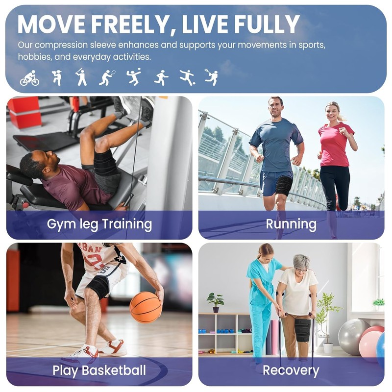 - Multi-Functional Applicability:As a versatile thigh brace, it can be worn for several hours during daily activities (avoid use during sleep or tight periods), suitable for running, cycling, basketball, football and other sports. It offers necessary support and precise compression for your thigh compression sleeve, providing all-day comfort and stability.