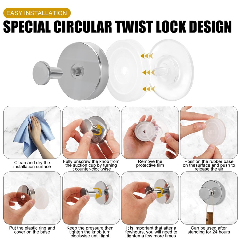 - press the hooks for hanging heavy duty against any smooth, flat surface and rotate the towel holder for bathroom wall to expel the air and secure shower hooks suction cup firmly. When you’re ready to move it, just rotate again for easy removal with no marks or residue left behind.