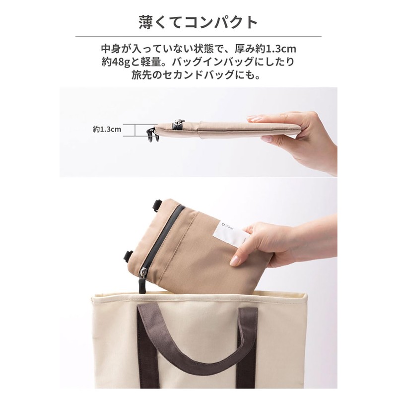 - The front and back exterior pockets make it easy to take out items like smartphones and other frequently used items. The zipper storage is perfect for storing wallets, keys, and small items. The inside of the pouch has a loop that can be attached to a carabiner. The interior is empty. The thickness is approx. 0.5 inches (1.3 cm) when empty, and the weight is approx. 1.7 oz (48 g). Can be adjusted in (48 g)