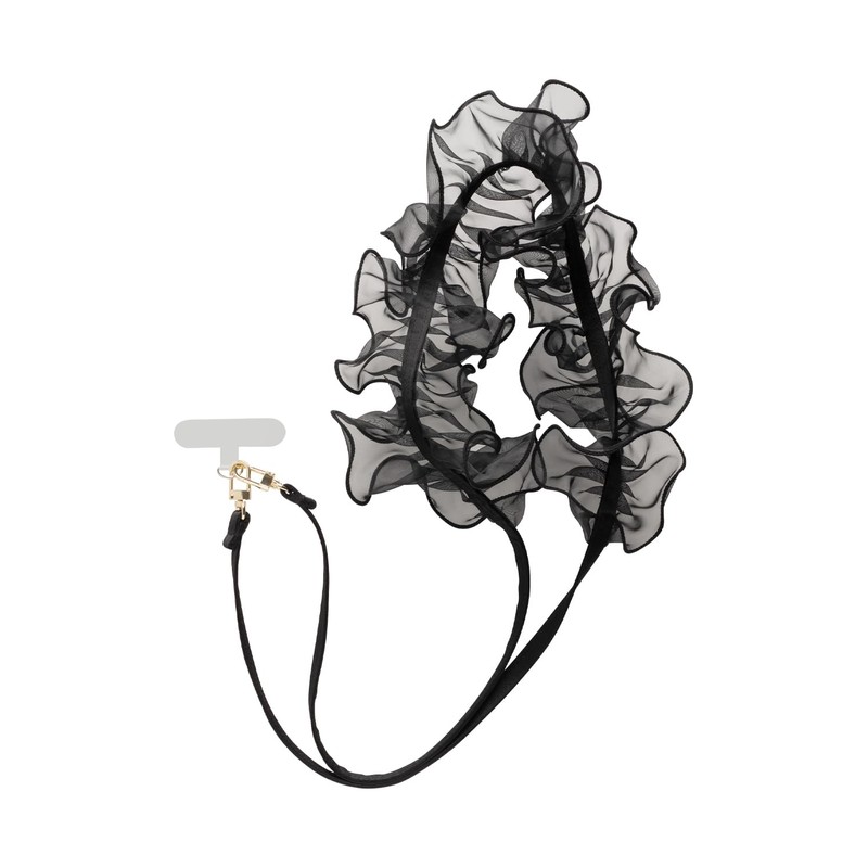 - ファッションの主役級! くしゅっとエアリーなショルダーストラップ。お気に入りのスマホケースに取り付けるだけ。手ぶらでお出かけができるショルダータイプのストラップ。くしゅくしゅっとしたやわらかなレースがアイコニックな、ファッションアイテムとしても活躍するデザインです。付属のホルダーシートを使用してスマホケースに装着・ナスカンフックで取り付け簡単・スマホだけでなくミニバッグのショルダーストラップとしても楽しめる