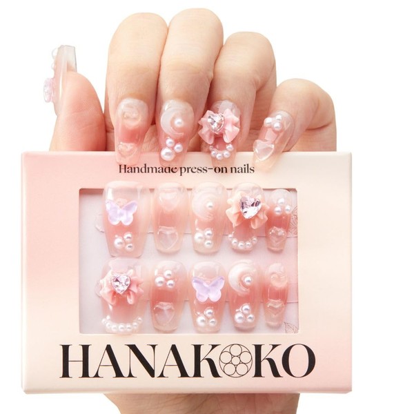 - Handmade Elegance: Indulge in the luxury of handmade press-on nails featuring delicate floral patterns, shimmering glitter accents, and pearlescent hues.