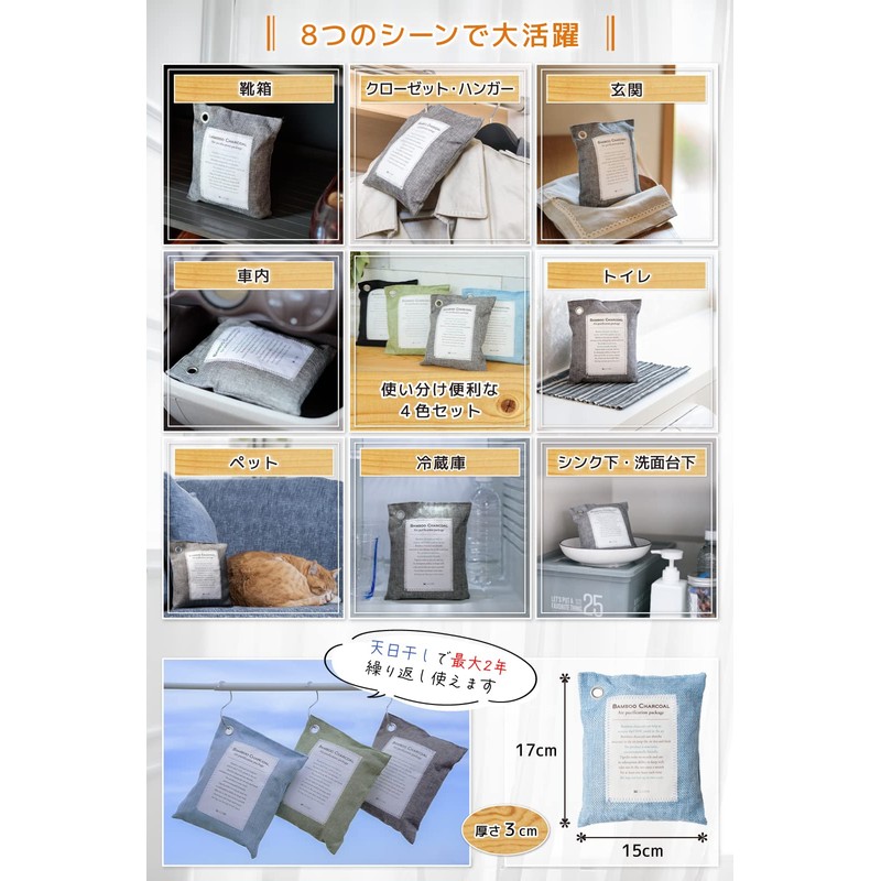 - (High quality and safe material with excellent cost performance) It can be used repeatedly for up to 2 years in the sun, so it is excellent for cost performance and economical. Double wall construction for durability without worrying about bamboo charcoal spills. We use only natural materials that are additive-free, so you can use it safely in homes with babies and pets. Of course, it is environmentally friendly and easy to disposal. When you finish it, you can throw it away as combustible garbage, but you can also put it into soil or use it as a fertilizer