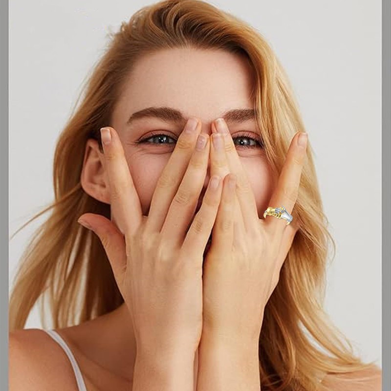 Hanaoops Rings for Women Open Adjustable Ring Promise Stacking Ring Silver Gold Hugging Hands Cubic Zirconia Partner Rings Finger Ring Midi Ring Simple Jewellery, Metal, No