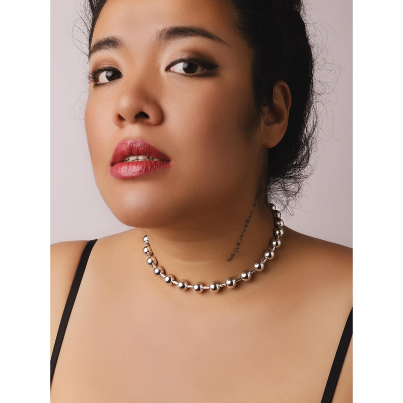 Hanary Sacina Aesthetic Emo Silver-tone Beaded Ball 45cm Chain Necklace, Gothic Punk Grunge Necklace, Christmas Jewelry Gift