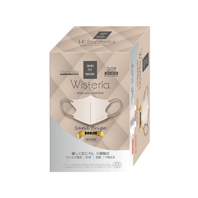 [Hanassia] 【全国マスク工業会マーク入り】 マスク 3D 立体不織布マスク bicolor マスク 個包装 30枚入り【AI-WILL】 (サンドベージュ)