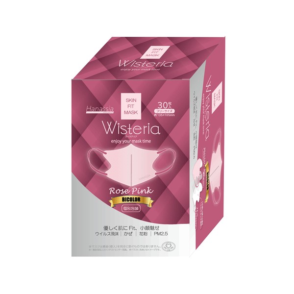 [Hanassia] 全国マスク工業会マーク入り ウィステリアbicolor マスク 個包装 30枚入り (ローズピンク)