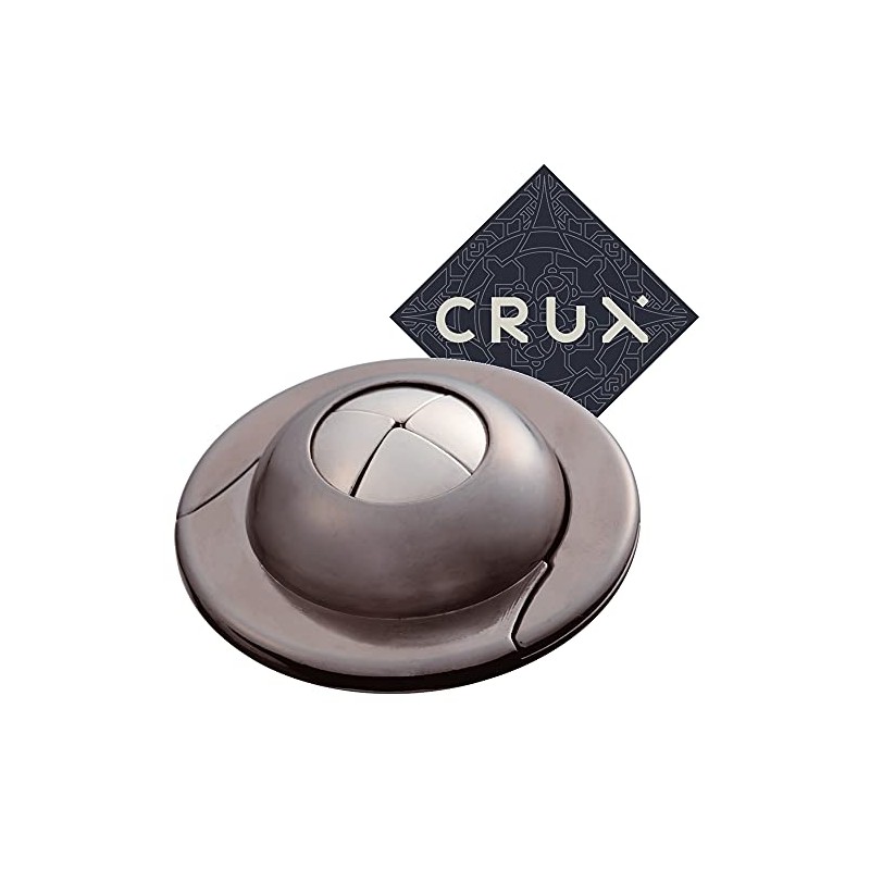 The Hanayama Cast UFO puzzle is unusual looking puzzle. As with all Hanayama puzzles the objective is to take apart and the reassemble. You will find as you try to play with the pieces in the middle they slip and slide away making this quite tricky. A level 4 out of 6 on the Hanayama star rating. Designed by Vesa Timonen of Finland. Also included is a Crux Puzzles sticker.