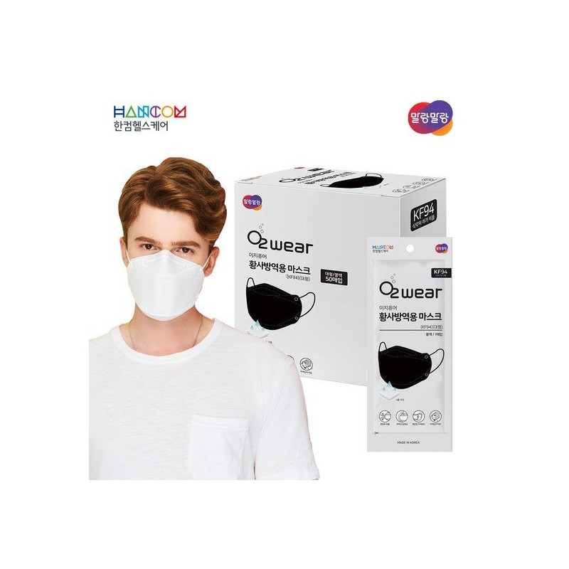 ■ Hancom Lifecare O2Wear Easy Pure Yellow Dust Prevention Fine Dust Mask KF94 Large Black 50 sheets size